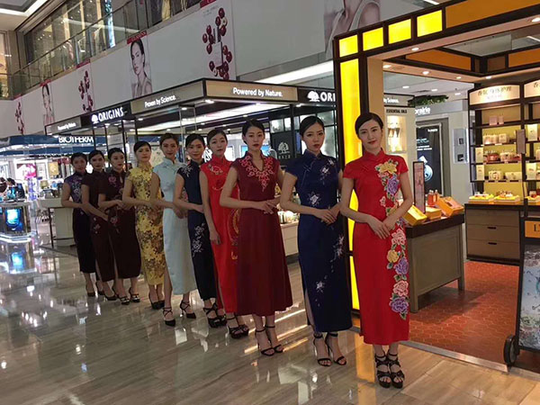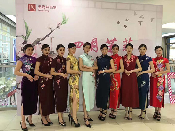 花開時節悅動京城,北京地區春季新展。昊騰品牌每件旗袍都金工細作,每款紋樣都由手工繪制